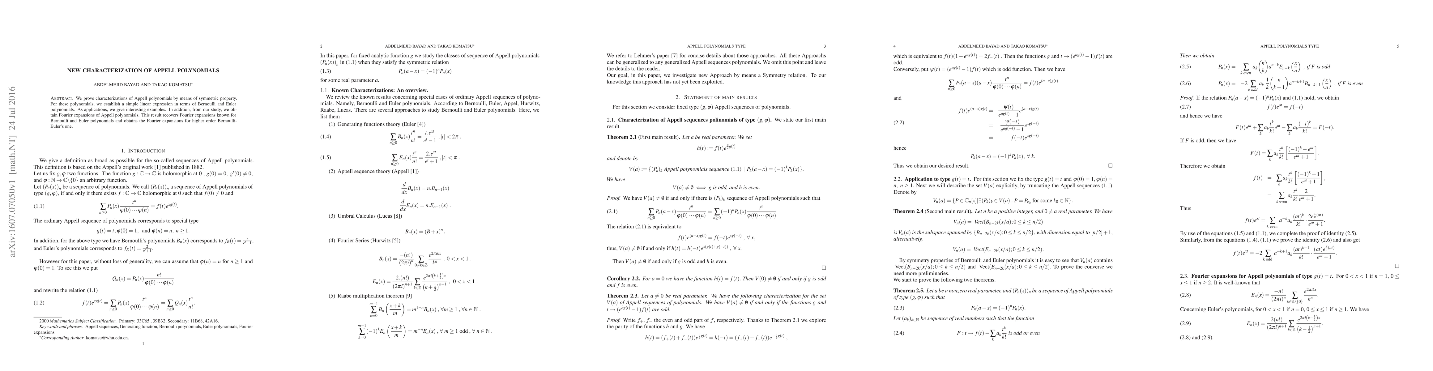 This paper characterizes Appell polynomials through symmetric properties and expresses them linearly in terms of Bernoulli and Euler polynomials. It also provides Fourier expansions for these polynomials, extending known results for Bernoulli and Euler polynomials to higher orders.