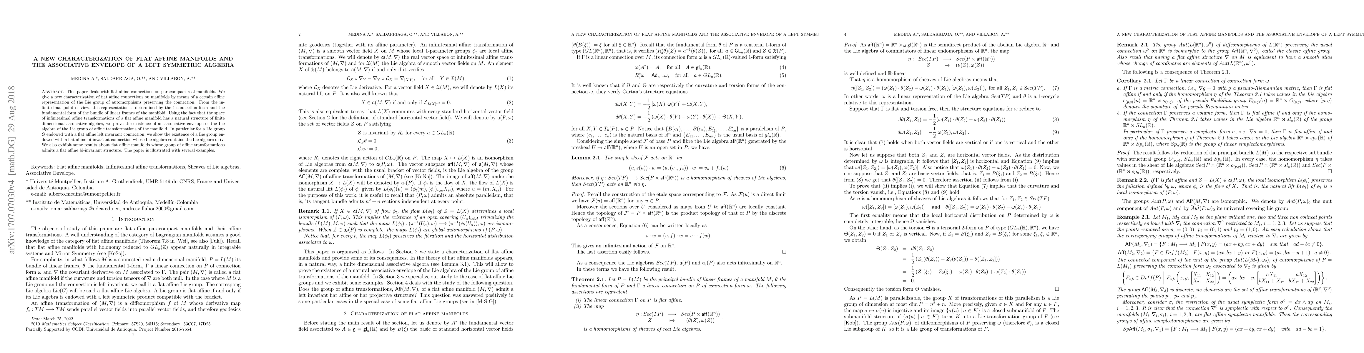 This paper deals with affine connections on real manifolds. We give a new characterization of flat affine connections on real manifolds by means of certain affine representations of the Lie group of automorphisms preserving the connection. Then we specialize the characterization to the case of a left invariant connection on a Lie group. In the last case, we show the existence of a Lie group endowed with a flat affine bi-invariant connection whose Lie algebra contains the Lie algebra of complete infinitesimal affine transformations of the given Lie group. We also prove some results about flat affine manifolds whose group of diffeomorphisms admit a flat affine bi-invariant structure. The paper is illustrated with several examples.