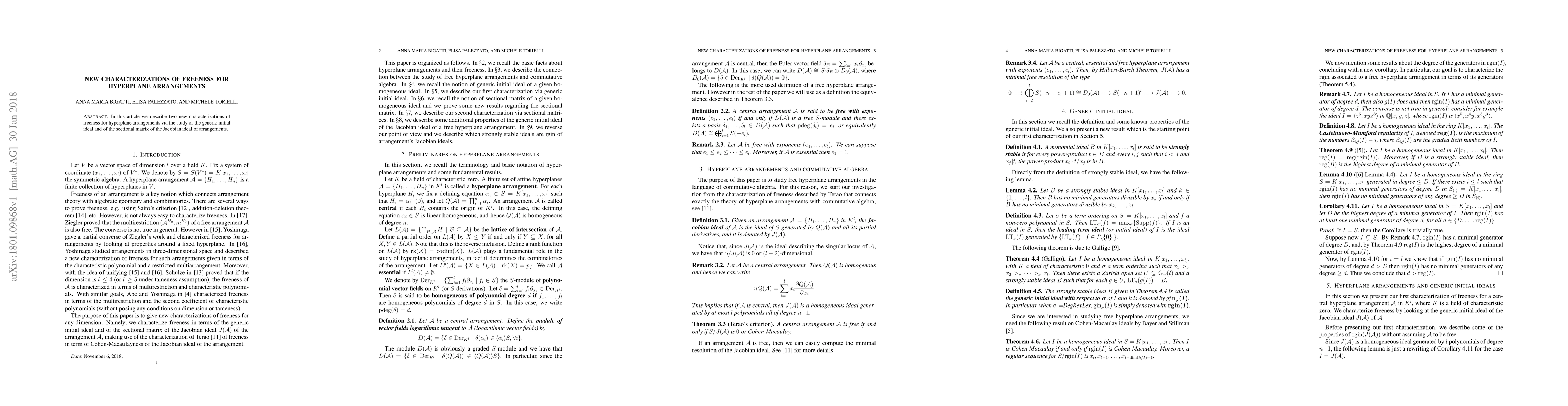 This paper introduces two novel characterizations of freeness for hyperplane arrangements through the examination of the generic initial ideal and the sectional matrix of the Jacobian ideal. These characterizations deepen the understanding of algebraic structures inherent in hyperplane arrangements.