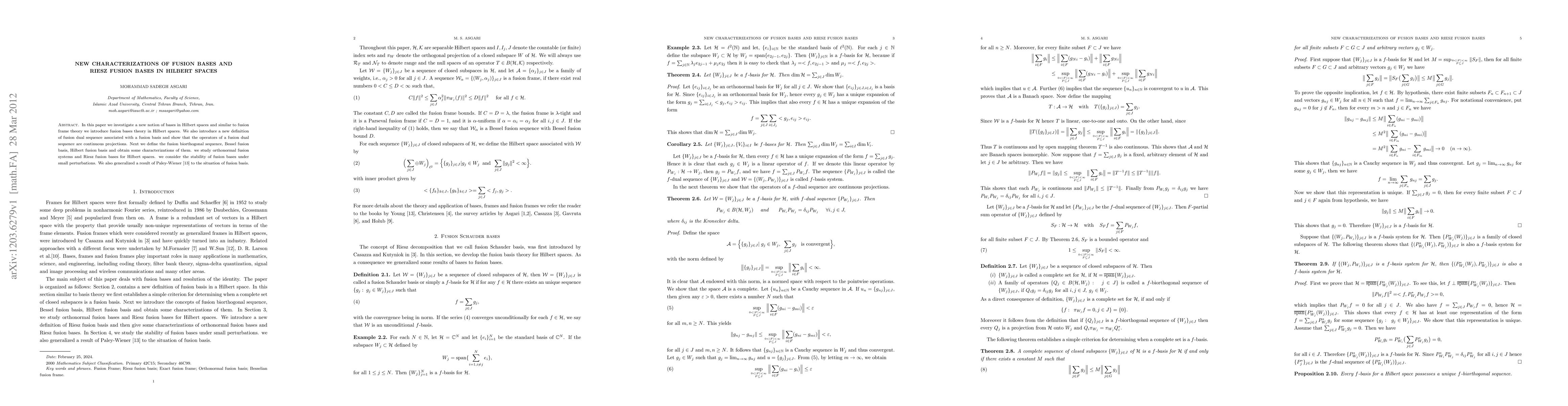 In this paper we investigate a new notion of bases in Hilbert spaces and similar to fusion frame theory we introduce fusion bases theory in Hilbert spaces. We also introduce a new definition of fusion dual sequence associated with a fusion basis and show that the operators of a fusion dual sequence are continuous projections. Next we define the fusion biorthogonal sequence, Bessel fusion basis, Hilbert fusion basis and obtain some characterizations of them. we study orthonormal fusion systems and Riesz fusion bases for Hilbert spaces. we consider the stability of fusion bases under small perturbations. We also generalized a result of Paley-Wiener [13] to the situation of fusion basis.