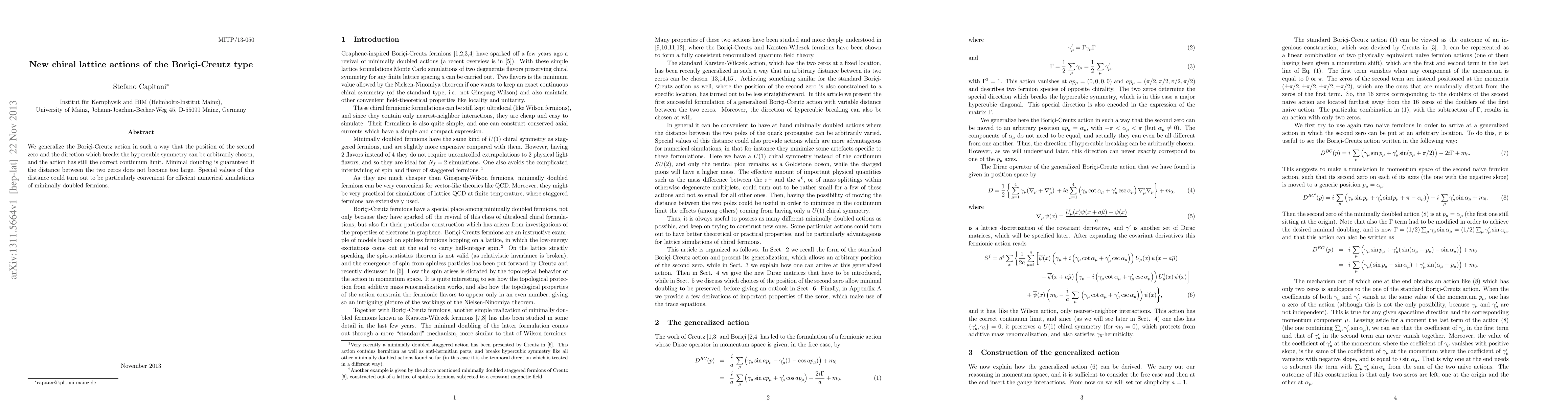 We generalize the Borici-Creutz action in such a way that the position of the second zero and the direction which breaks the hypercubic symmetry can be arbitrarily chosen, and the action has still the correct continuum limit. Minimal doubling is guaranteed if the distance between the two zeros does not become too large. Special values of this distance could turn out to be particularly convenient for efficient numerical simulations of minimally doubled fermions.