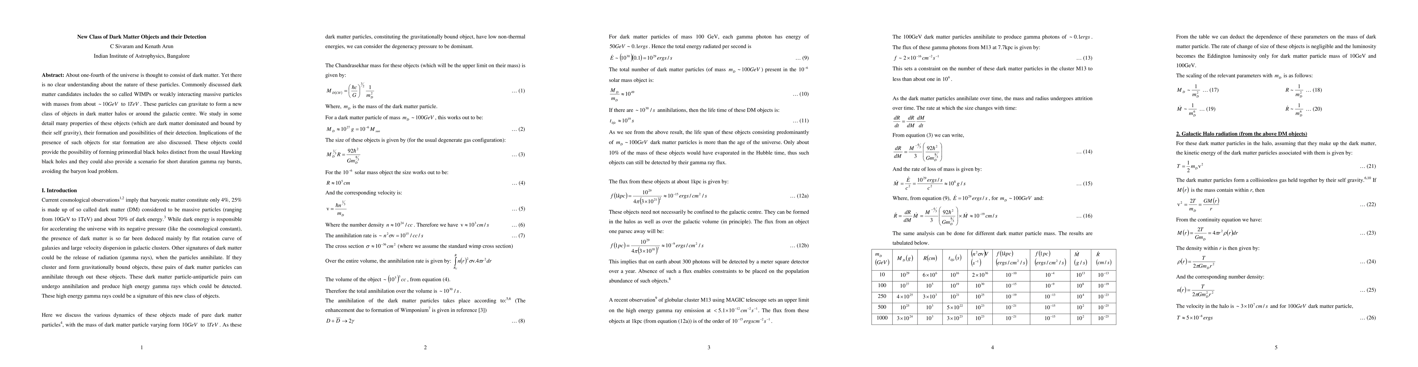 About one-fourth of the universe is thought to consist of dark matter. Yet there is no clear understanding about the nature of these particles. Commonly discussed dark matter candidates includes the so called WIMPs or weakly interacting massive particles with masses from about 10GeV to 1TeV. These particles can gravitate to form a new class of objects in dark matter halos or around the galactic centre. We study in some detail many properties of these objects; which are dark matter dominated and bound by their self gravity; their formation and possibilities of their detection. Implications of the presence of such objects for star formation are also discussed. These objects could provide the possibility of forming primordial black holes distinct from the usual Hawking black holes and they could also provide a scenario for short duration gamma ray bursts, avoiding the baryon load problem.