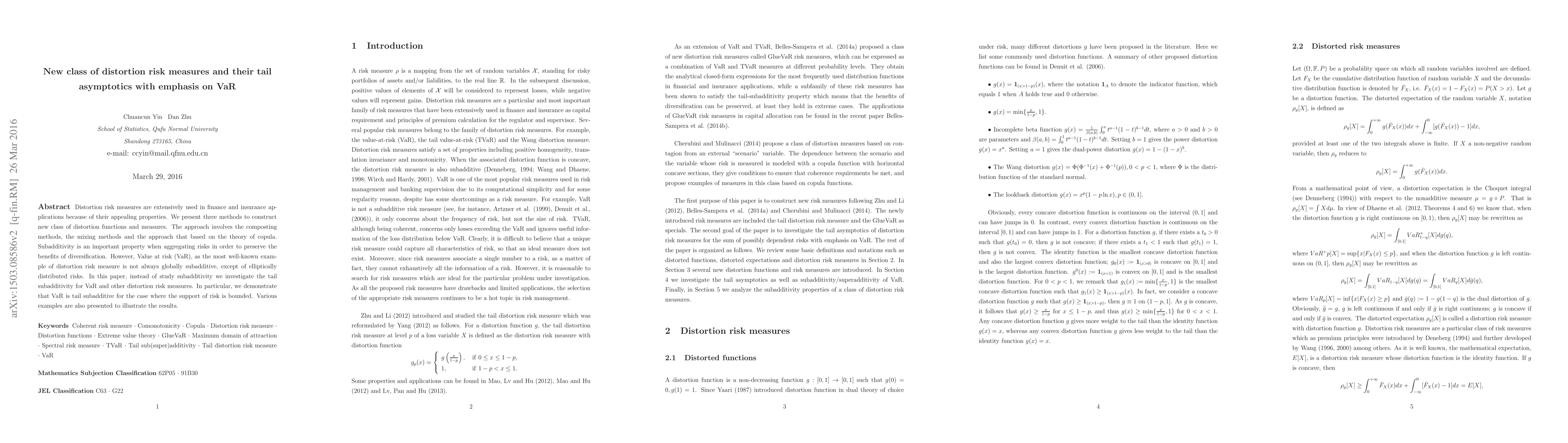 Researchers introduce new methods to construct distortion risk measures, focusing on tail subadditivity for Value at Risk (VaR), which is essential for preserving diversification benefits.