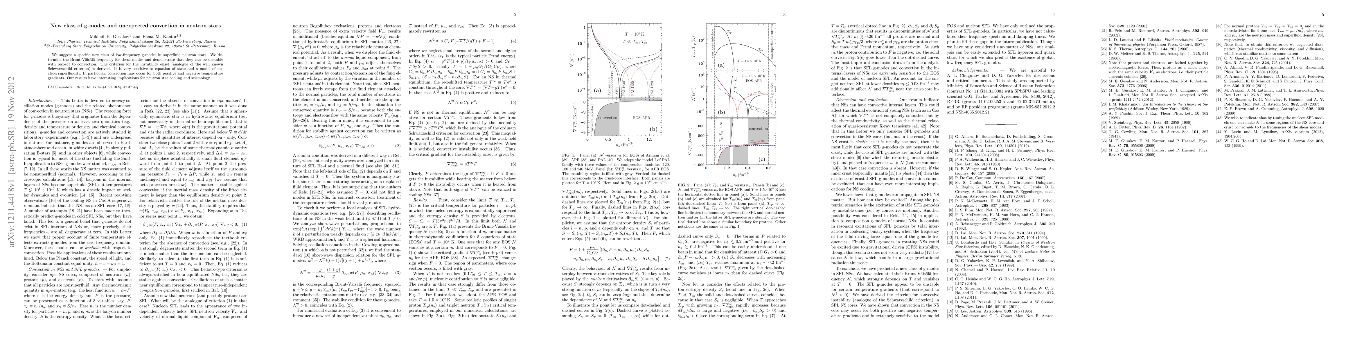 The research analyzes superfluid neutron stars, deriving a new class of low-frequency g-modes and examining their instability to convection. The Brunt-Vaisala frequency for these modes is determined, and the instability criterion, analogous to the Schwarzschild criterion, is formulated, showing sensitivity to the equation of state and superfluidity model of nucleons.