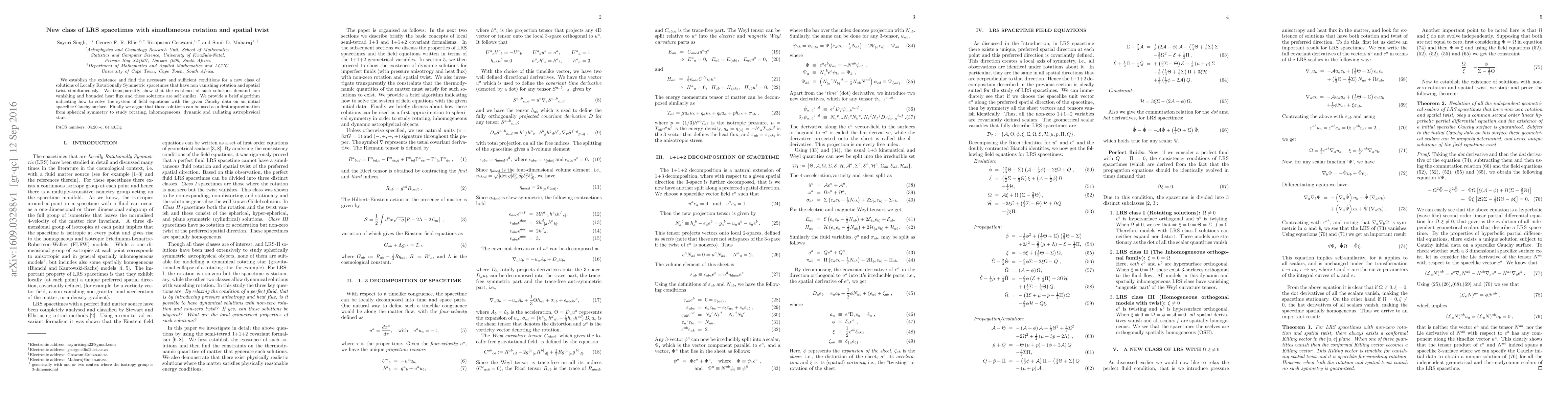 We establish the existence and find the necessary and sufficient conditions for a new class of solutions of Locally Rotationally Symmetric spacetimes that have non vanishing rotation and spatial twist simultaneously. We transparently show that the existence of such solutions demand non vanishing and bounded heat flux and these solutions are self similar. We provide a brief algorithm indicating how to solve the system of field equations with the given Cauchy data on an initial spacelike Cauchy surface. Finally we argue that these solutions can be used as a first approximation from spherical symmetry to study rotating, inhomogeneous, dynamic and radiating astrophysical stars.