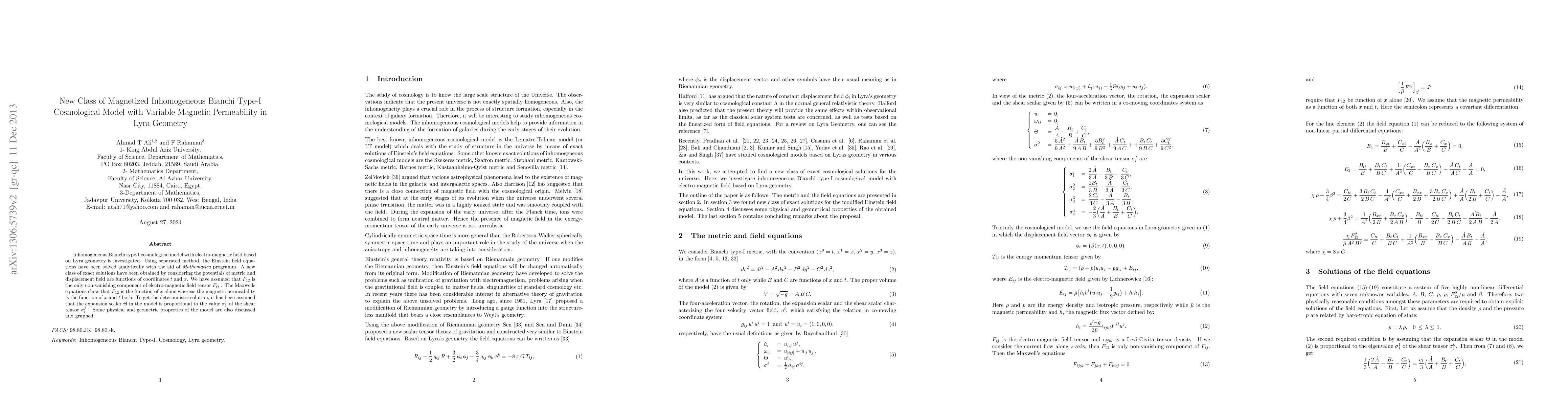This paper presents an analytical solution for an inhomogeneous Bianchi type-I cosmological model in Lyra geometry, incorporating a variable magnetic permeability and a non-vanishing electromagnetic field component F(12). The model's properties are explored through the derived exact solutions and discussed in terms of physical and geometric implications.