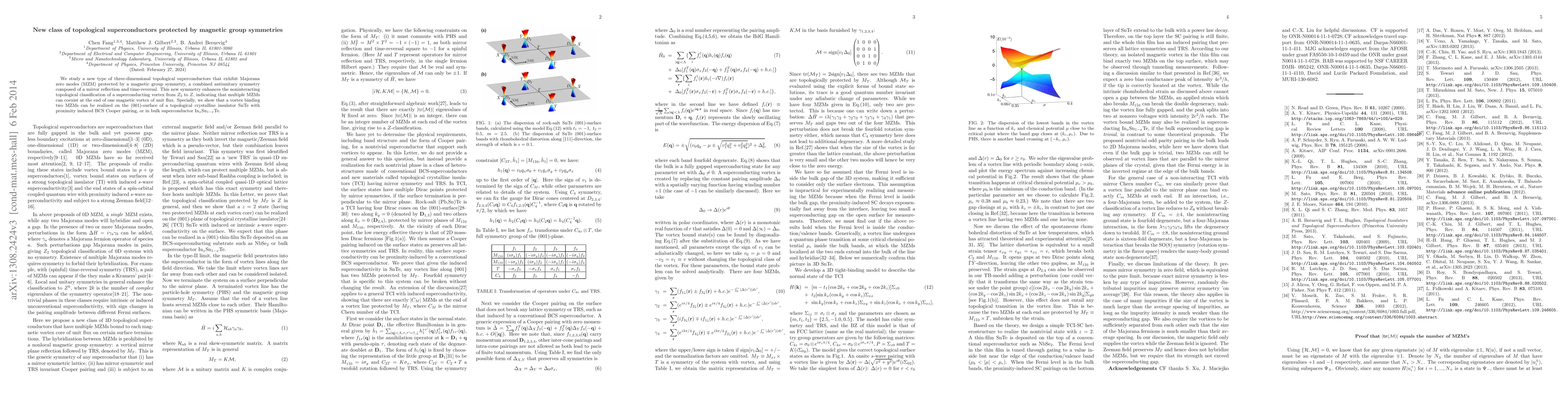 We study a new type of three-dimensional topological superconductors that exhibit Majorana zero modes (MZM) protected by a magnetic group symmetry, a combined antiunitary symmetry composed of a mirror reflection and time-reversal. This new symmetry enhances the noninteracting topological classification of a superconducting vortex from $Z_2$ to $Z$, indicating that multiple MZMs can coexist at the end of one magnetic vortex of unit flux. Specially, we show that a vortex binding two MZMs can be realized on the $(001)$-surface of a topological crystalline insulator SnTe with proximity induced BCS Cooper pairing, or in bulk superconductor In$_x$Sn$_{1-x}$Te.