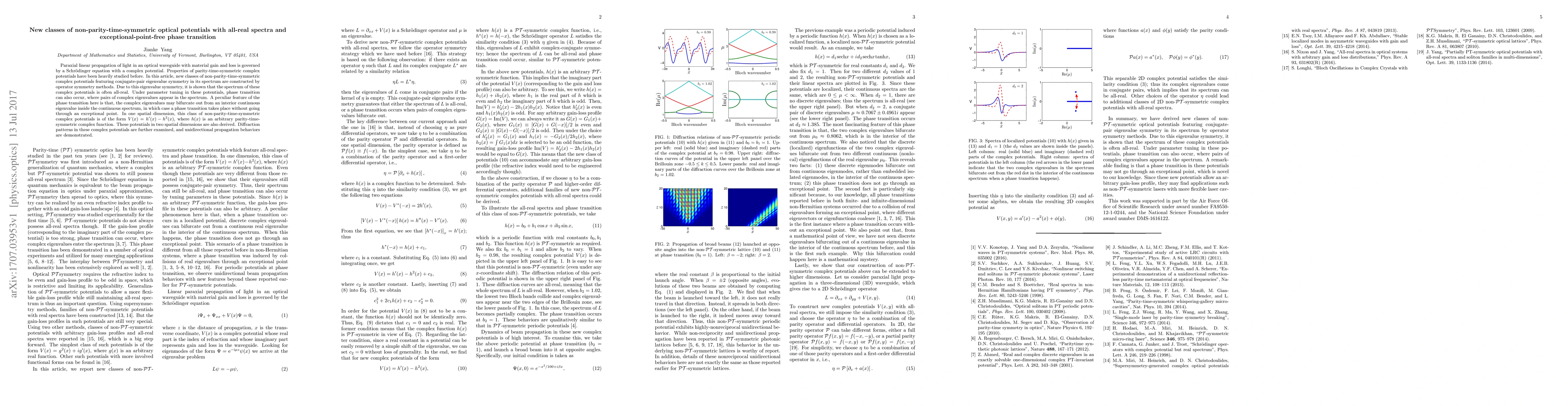 This paper introduces new non-parity-time-symmetric optical potentials with all-real spectra and exceptional-point-free phase transitions. These potentials exhibit conjugate-pair eigenvalue symmetry, enabling real spectra and unique phase transition behaviors without exceptional points.