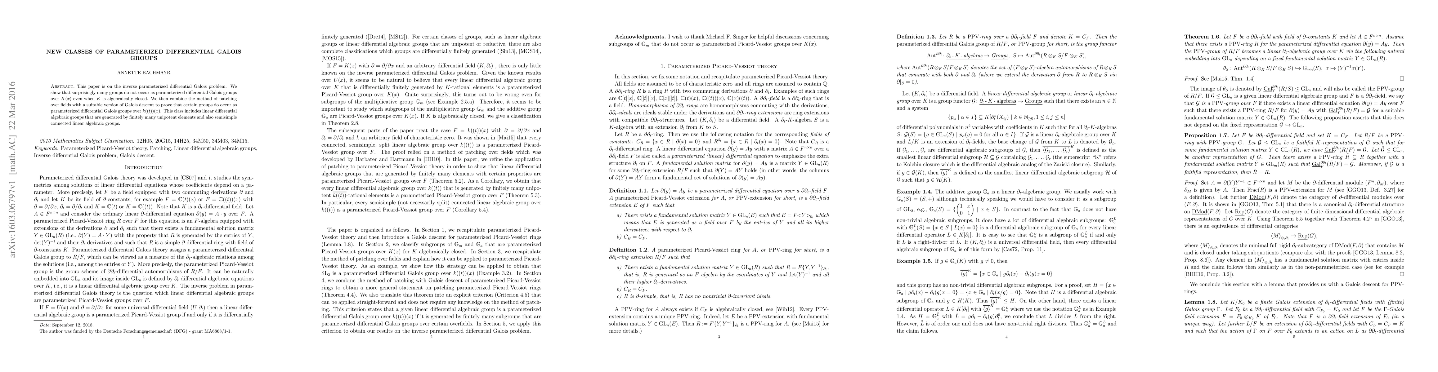 This paper is on the inverse parameterized differential Galois problem. We show that surprisingly many groups do not occur as parameterized differential Galois groups over K(x) even when K is algebraically closed. We then combine the method of patching over fields with a suitable version of Galois descent to prove that certain groups do occur as parameterized differential Galois groups over k((t))(x). This class includes linear differential algebraic groups that are generated by finitely many unipotent elements and also semisimple connected linear algebraic groups.