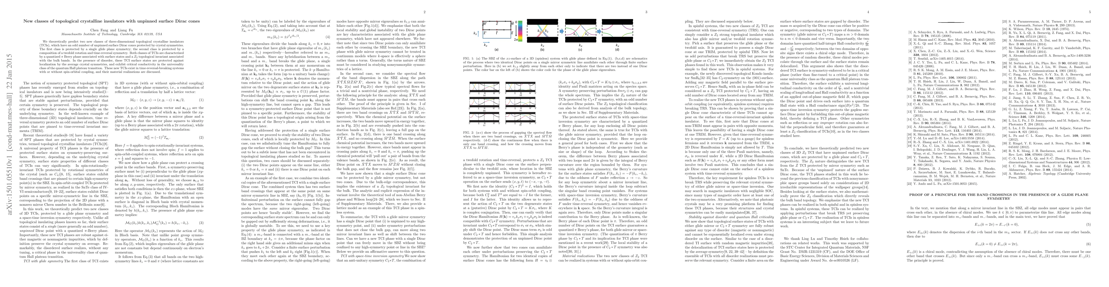 We theoretically predict two new classes of three-dimensional topological crystalline insulators (TCIs), which have an odd number of unpinned surface Dirac cones protected by crystal symmetries. The first class is protected by a single glide plane symmetry; the second class is protected by a composition of a twofold rotation and time-reversal symmetry. Both classes of TCIs are characterized by a quantized $\pi$ Berry phase associated with surface states and a $Z_2$ topological invariant associated with the bulk bands. In the presence of disorder, these TCI surface states are protected against localization by the average crystal symmetries, and exhibit critical conductivity in the universality class of the quantum Hall plateau transition. These new TCIs exist in time-reversal-breaking systems with or without spin-orbital coupling, and their material realizations are discussed.