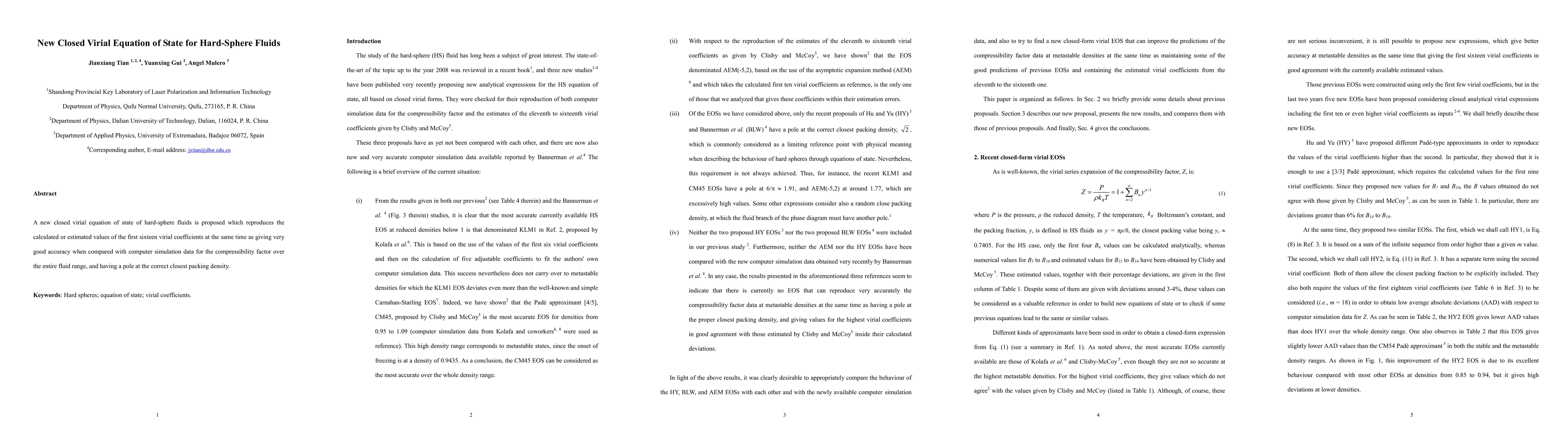 This paper introduces a novel closed virial equation of state for hard-sphere fluids, accurately reproducing the first sixteen virial coefficients and closely matching computer simulation data for the compressibility factor across the fluid range, with a pole at the correct closest packing density.