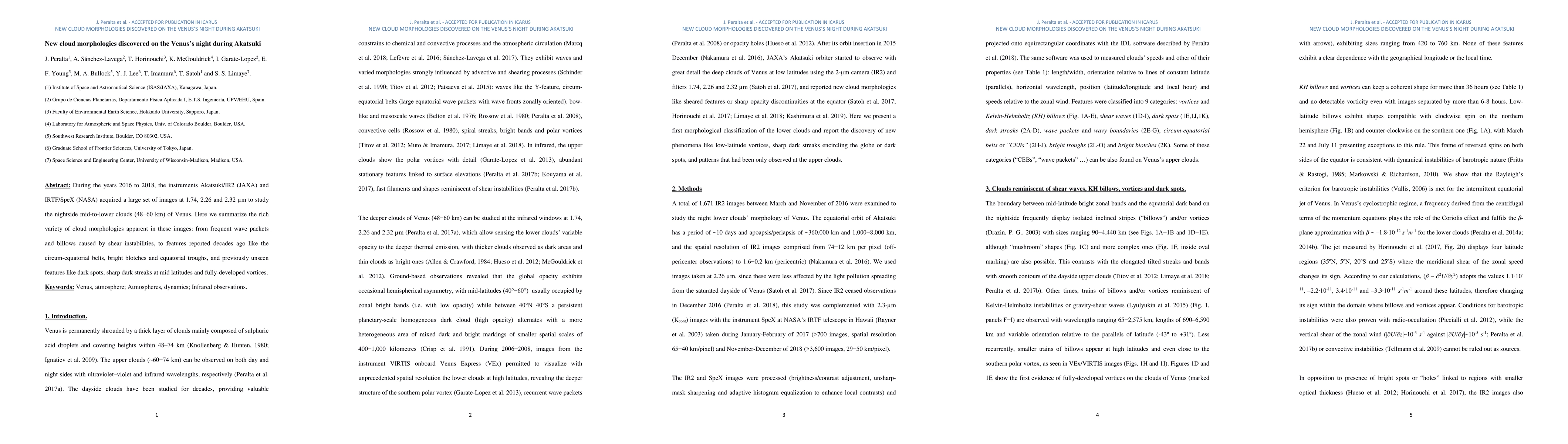 During the years 2016 to 2018, the instruments Akatsuki/IR2 (JAXA) and IRTF/SpeX (NASA) acquired a large set of images at 1.74, 2.26 and 2.32 {\mu}m to study the nightside mid-to-lower clouds (48-60 km) of Venus. Here we summarize the rich variety of cloud morphologies apparent in these images: from frequent wave packets and billows caused by shear instabilities, to features reported decades ago like the circum-equatorial belts, bright blotches and equatorial troughs, and previously unseen features like dark spots, sharp dark streaks at mid latitudes and fully-developed vortices.