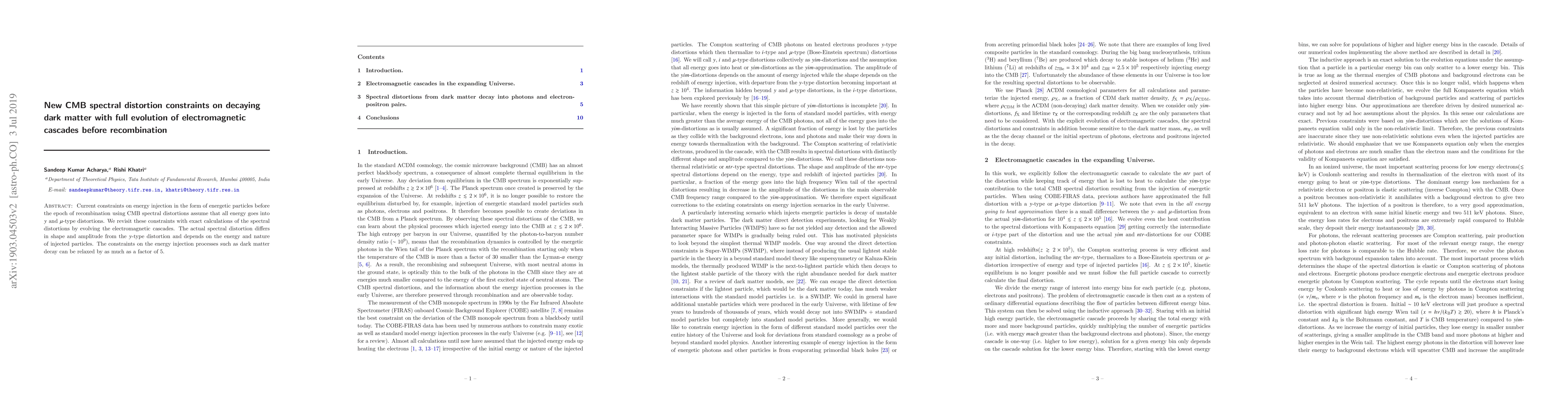 This paper refines constraints on decaying dark matter by accurately modeling electromagnetic cascades before recombination, revealing that the spectral distortion differs from $y$-type assumptions, potentially relaxing current constraints by up to a factor of 5.