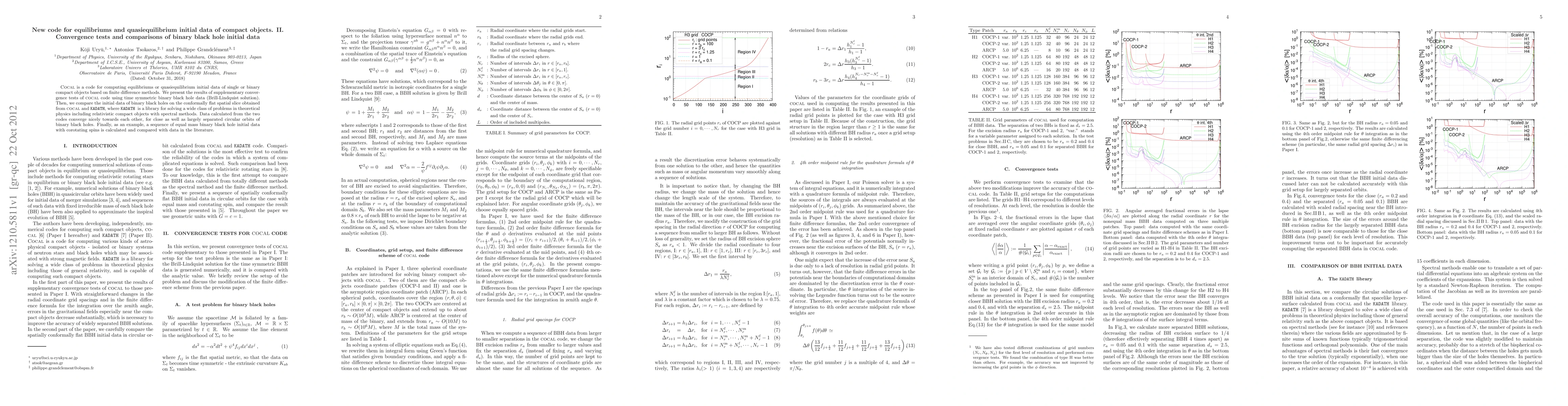 COCAL is a code for computing equilibriums or quasiequilibrium initial data of single or binary compact objects based on finite difference methods. We present the results of supplementary convergence tests of COCAL code using time symmetric binary black hole data (Brill-Lindquist solution). Then, we compare the initial data of binary black holes on the conformally flat spatial slice obtained from COCAL and KADATH, where KADATH is a library for solving a wide class of problems in theoretical physics including relativistic compact objects with spectral methods. Data calculated from the two codes converge nicely towards each other, for close as well as largely separated circular orbits of binary black holes. Finally, as an example, a sequence of equal mass binary black hole initial data with corotating spins is calculated and compared with data in the literature.