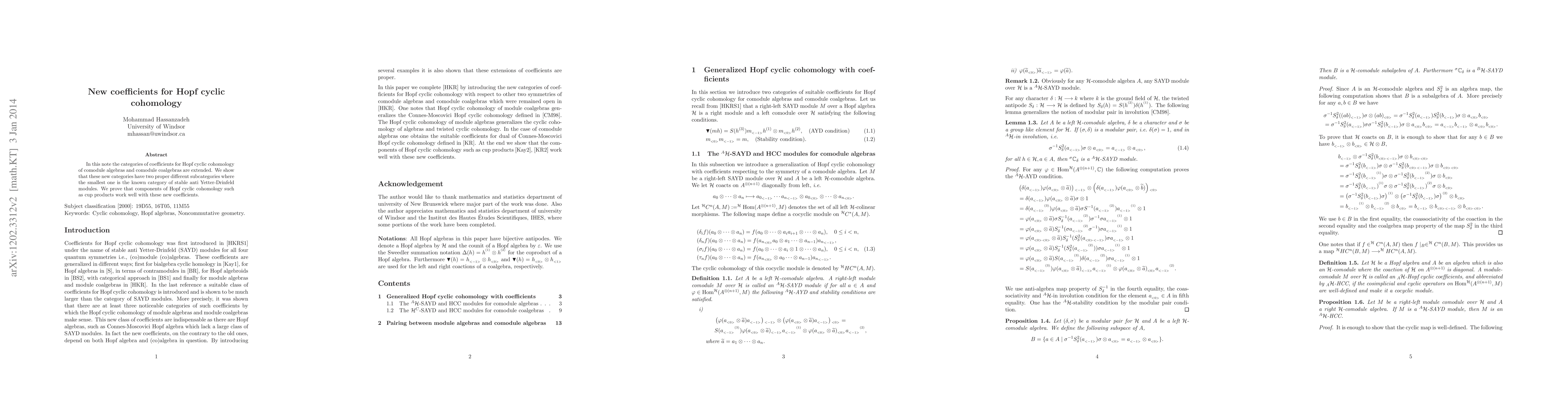 This paper extends the categories of coefficients for Hopf cyclic cohomology, introducing new subcategories within them, with the smallest being the known category of stable anti Yetter-Drinfeld modules. It demonstrates that existing components like cup products function effectively with these new coefficients.