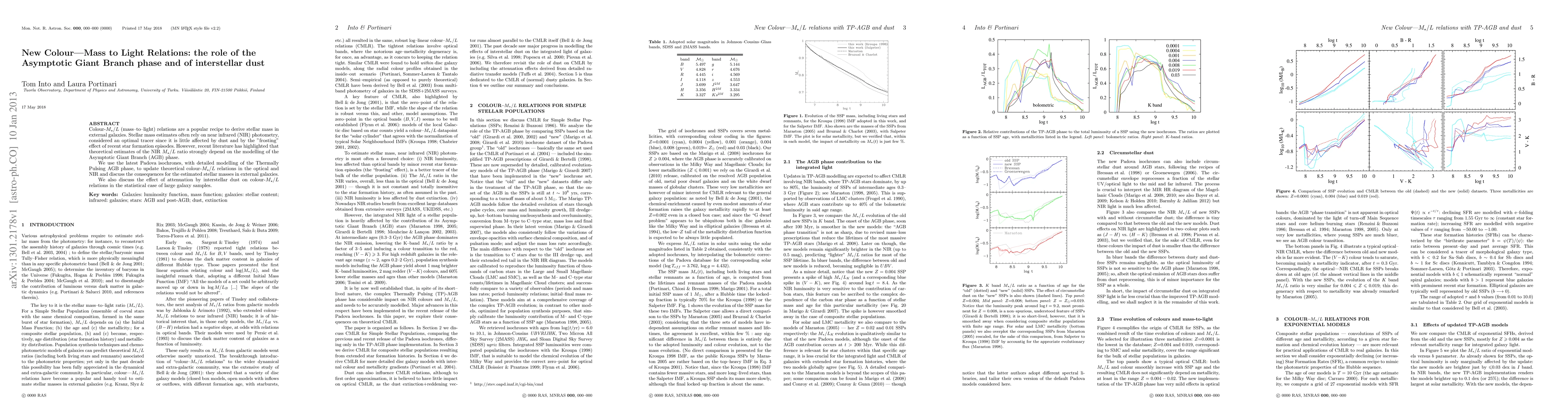 This paper updates colour-mass to light (M/L) relations using the latest Padova isochrones, focusing on the Asymptotic Giant Branch (AGB) phase and its impact on near infrared (NIR) M/L ratios. It also examines the influence of interstellar dust on these relations, which is crucial for accurate stellar mass estimates in external galaxies.