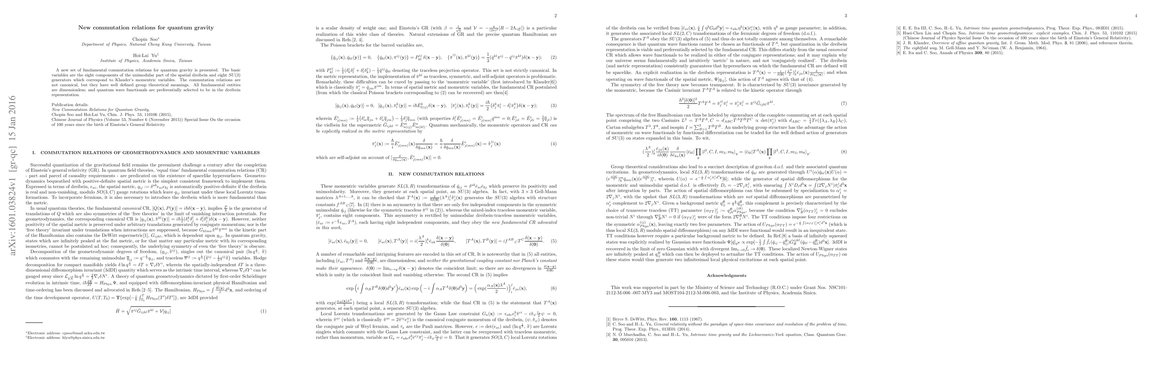 This paper introduces a novel set of commutation relations for quantum gravity, utilizing the unimodular spatial dreibein and SU(3) generators, which provide a non-canonical yet group-theoretically meaningful framework. The approach ensures all fundamental entities are dimensionless, with wave functionals represented in the dreibein representation.