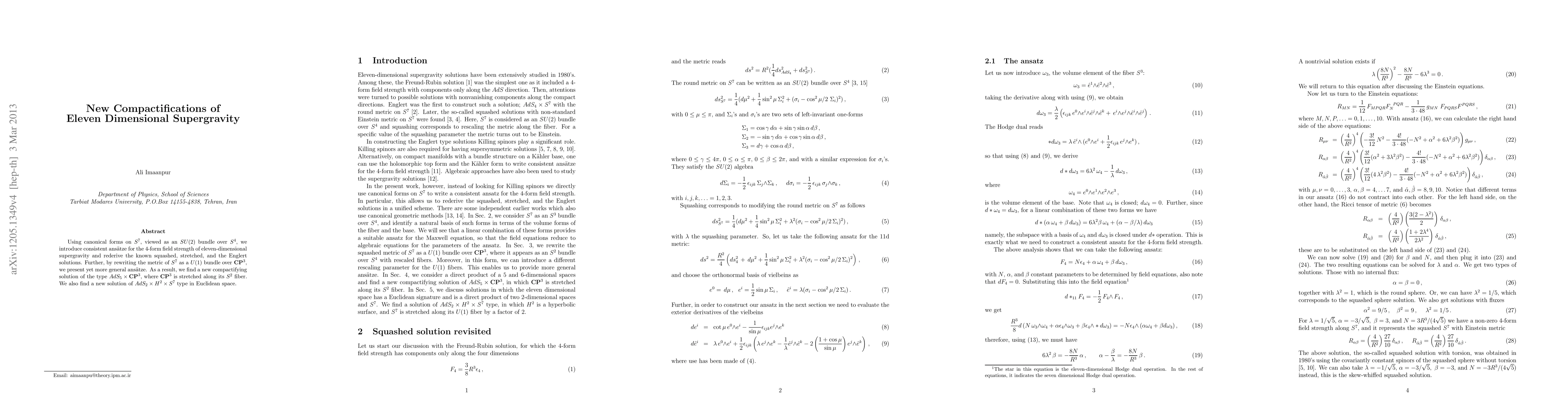 This paper introduces new compactifications of eleven-dimensional supergravity using canonical forms on S^7. It presents new solutions, including AdS_5×CP^3 and AdS_2×H^2×S^7, by employing ansatze derived from SU(2) and U(1) bundles over S^4 and CP^3 respectively.