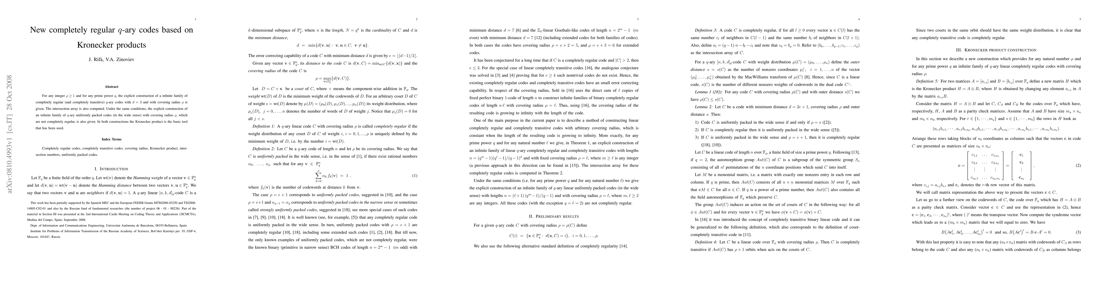 For any integer $\rho \geq 1$ and for any prime power q, the explicit construction of a infinite family of completely regular (and completely transitive) q-ary codes with d=3 and with covering radius $\rho$ is given. The intersection array is also computed. Under the same conditions, the explicit construction of an infinite family of q-ary uniformly packed codes (in the wide sense) with covering radius $\rho$, which are not completely regular, is also given. In both constructions the Kronecker product is the basic tool that has been used.