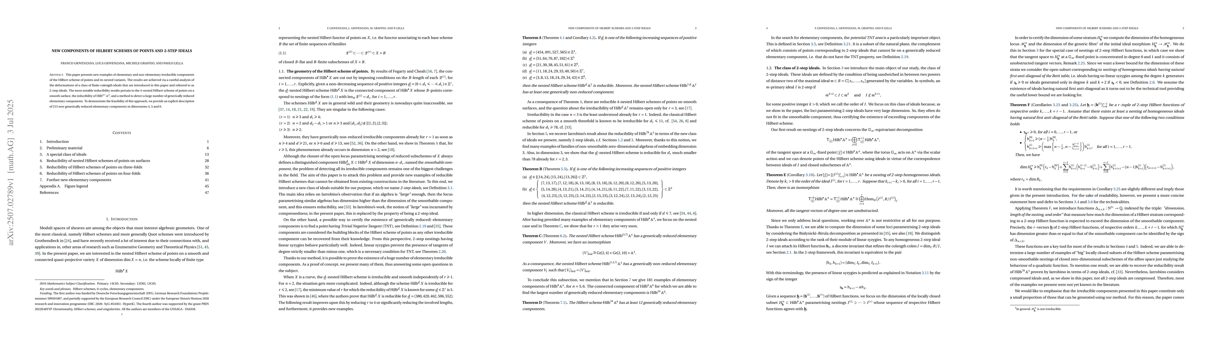 This paper introduces '2-step ideals' to uncover new irreducible components of Hilbert scheme of points, including 215 previously unknown generically reduced elements in dimensions 4, 5, and 6. It also reveals reducibility in the 4-nested Hilbert scheme of points on a smooth surface and $ ext{Hilb}^{3,7}mathbb{A}^4$.