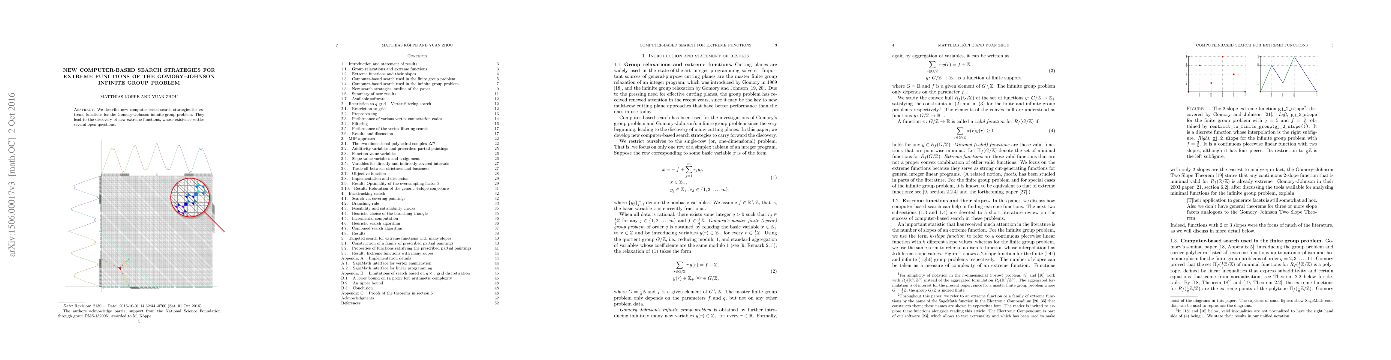 Summary: This paper introduces innovative computer-based search strategies to identify extreme functions for the Gomory-Johnson infinite group problem, resulting in the discovery of new functions that resolve several longstanding questions.