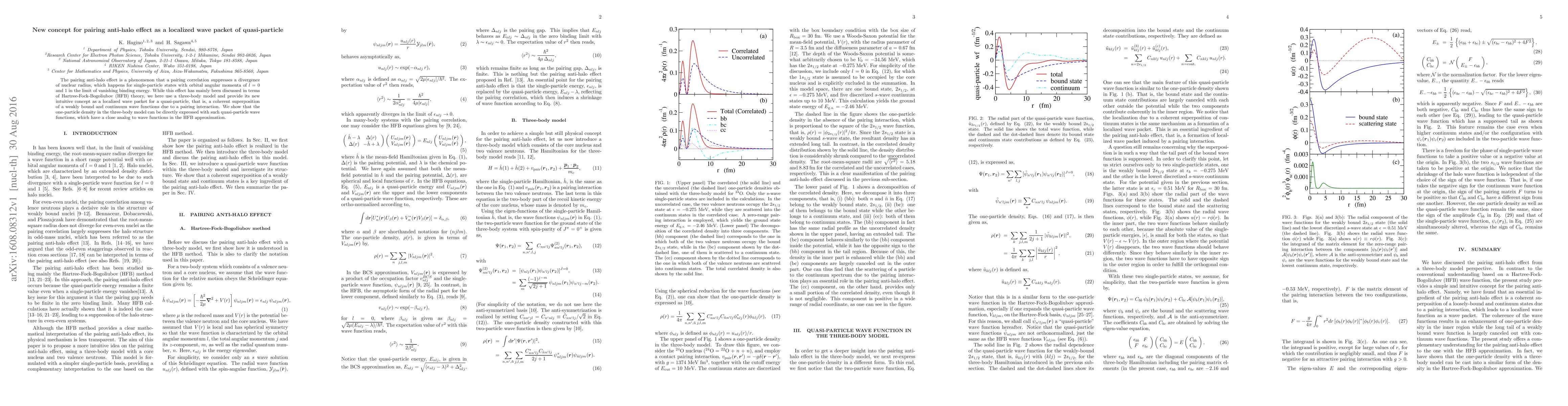 This paper introduces a novel concept of the pairing anti-halo effect as a localized wave packet of quasi-particles, explaining how pairing correlations suppress nuclear radius divergence. It uses a three-body model to provide an intuitive understanding of this phenomenon, showing that one-particle density can be expressed through quasi-particle wave functions.