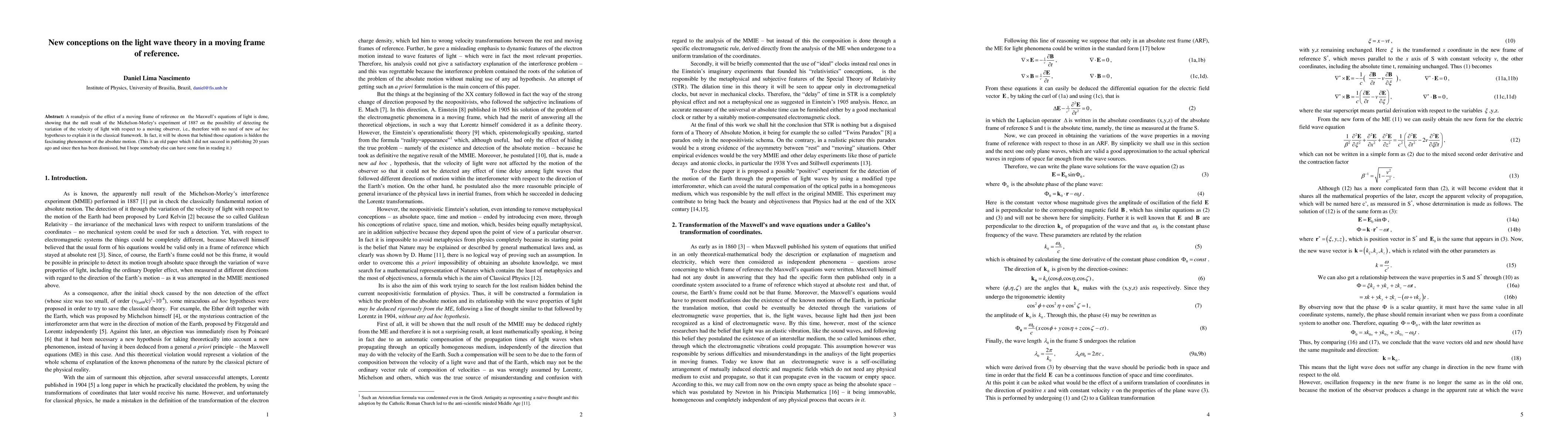 This paper reanalyzes the impact of a moving frame of reference on light wave theory, demonstrating that the null result of the 1887 Michelson-Morley experiment was inherently predicted by existing equations, revealing the phenomenon of absolute motion without requiring new hypotheses.