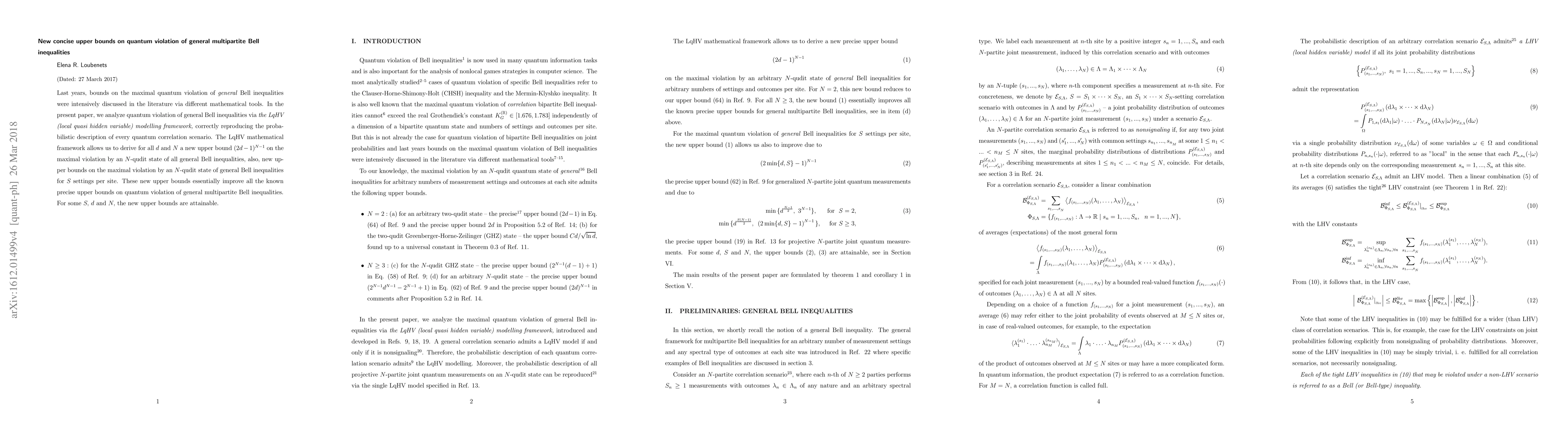 This paper presents new upper bounds on the quantum violation of general multipartite Bell inequalities using the LqHV modelling framework, which significantly improves upon existing precise upper bounds. The derived upper bound is (2d-1)^{N-1} for all dimensions d and parties N, and it is shown to be attainable for certain parameters.