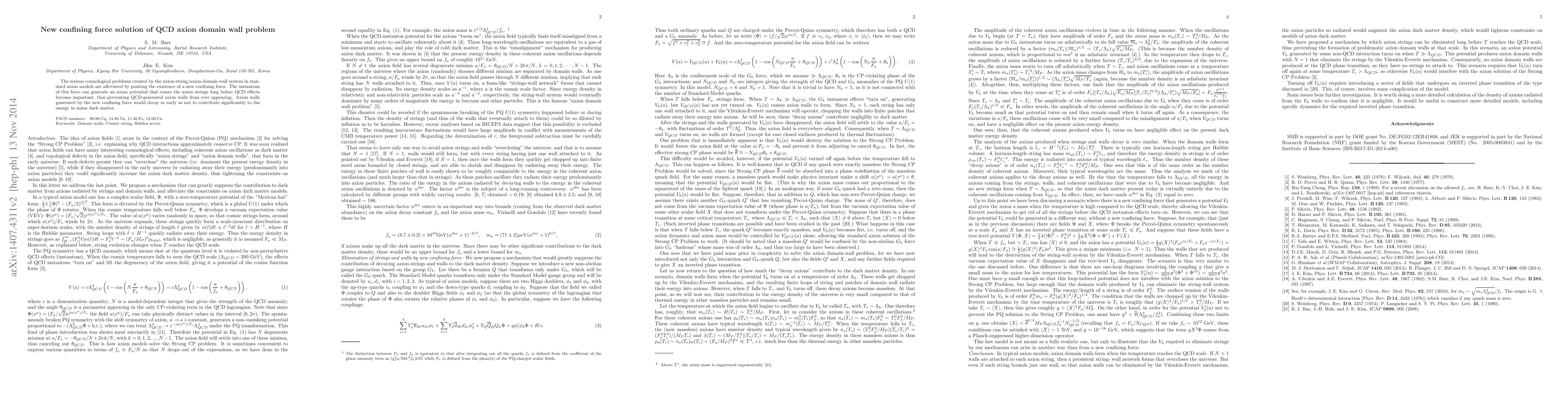 The paper proposes a new confining force to resolve the cosmological issues caused by axion-string/domain-wall systems, suggesting it generates an axion potential that eliminates axion strings early, preventing QCD-generated axion walls and minimizing their contribution to dark matter.