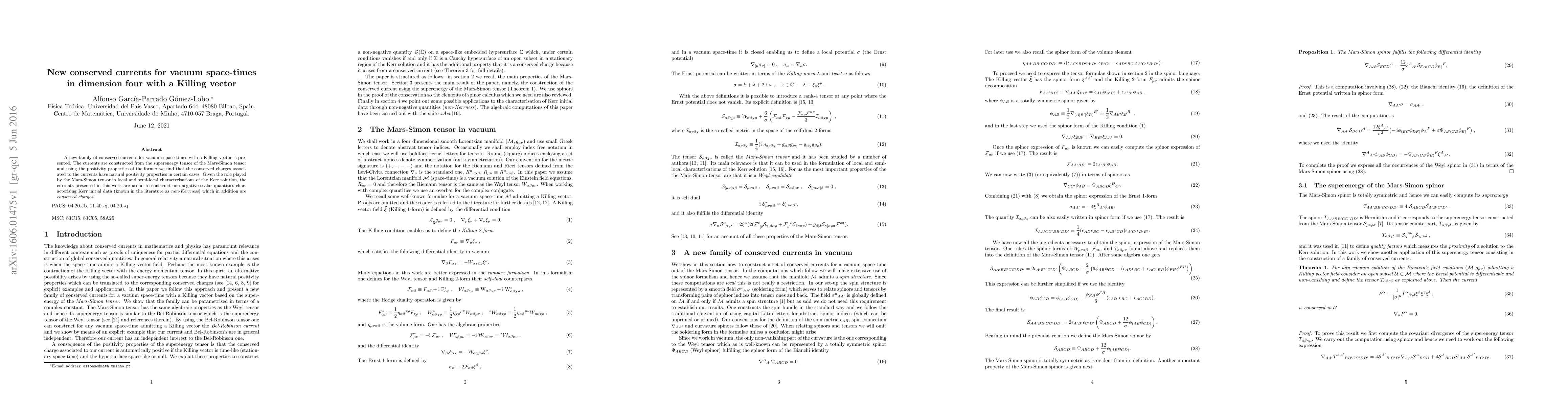 This paper introduces a new set of conserved currents for vacuum space-times possessing a Killing vector, derived from the superenergy tensor of the Mars-Simon tensor. These currents exhibit natural positivity properties, making them useful for constructing non-negative scalar quantities characterizing Kerr initial data.