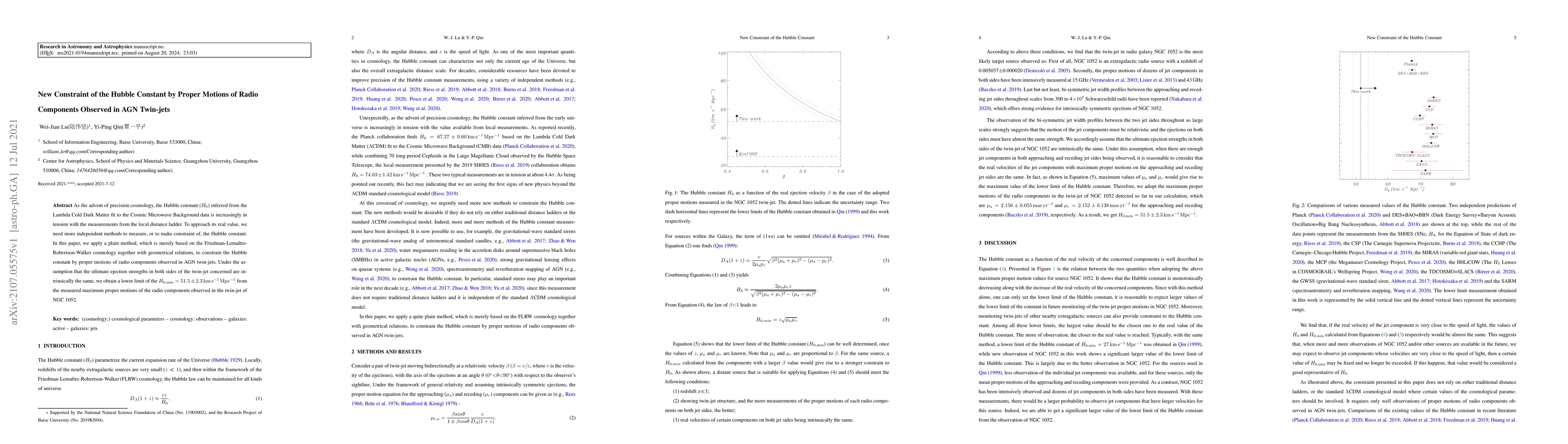 New research uses radio component motions in AGN twin-jets to constrain the Hubble constant, finding a lower limit of 51.5 km/s Mpc^-1.