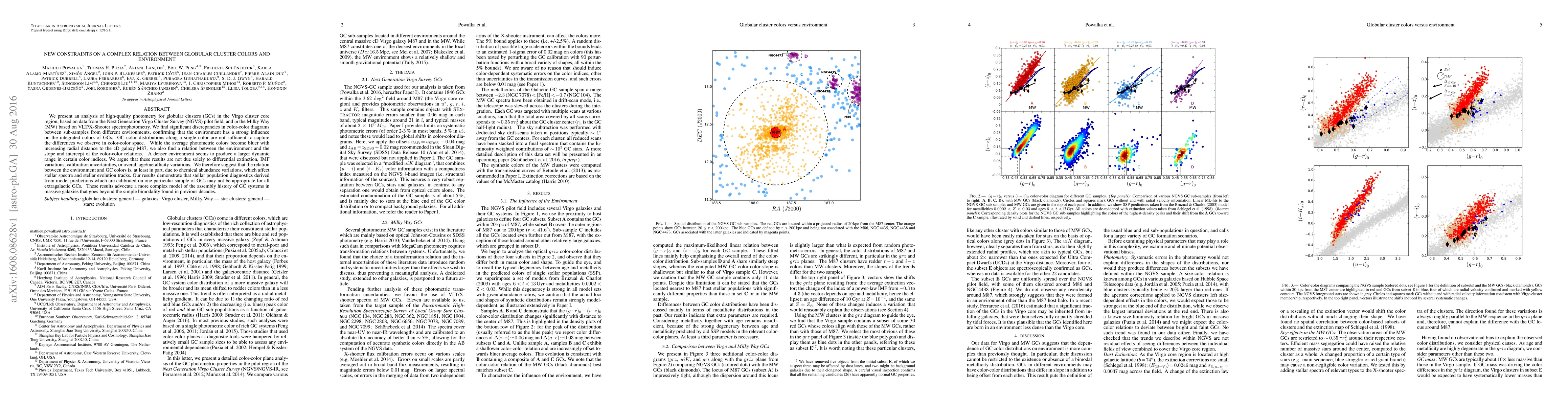 We present an analysis of high-quality photometry for globular clusters (GCs) in the Virgo cluster core region, based on data from the Next Generation Virgo Cluster Survey (NGVS) pilot field, and in the Milky Way (MW) based on VLT/X-Shooter spectrophotometry. We find significant discrepancies in color-color diagrams between sub-samples from different environments, confirming that the environment has a strong influence on the integrated colors of GCs. GC color distributions along a single color are not sufficient to capture the differences we observe in color-color space. While the average photometric colors become bluer with increasing radial distance to the cD galaxy M87, we also find a relation between the environment and the slope and intercept of the color-color relations. A denser environment seems to produce a larger dynamic range in certain color indices. We argue that these results are not due solely to differential extinction, IMF variations, calibration uncertainties, or overall age/metallicity variations. We therefore suggest that the relation between the environment and GC colors is, at least in part, due to chemical abundance variations, which affect stellar spectra and stellar evolution tracks. Our results demonstrate that stellar population diagnostics derived from model predictions which are calibrated on one particular sample of GCs may not be appropriate for all extragalactic GCs. These results advocate a more complex model of the assembly history of GC systems in massive galaxies that goes beyond the simple bimodality found in previous decades.