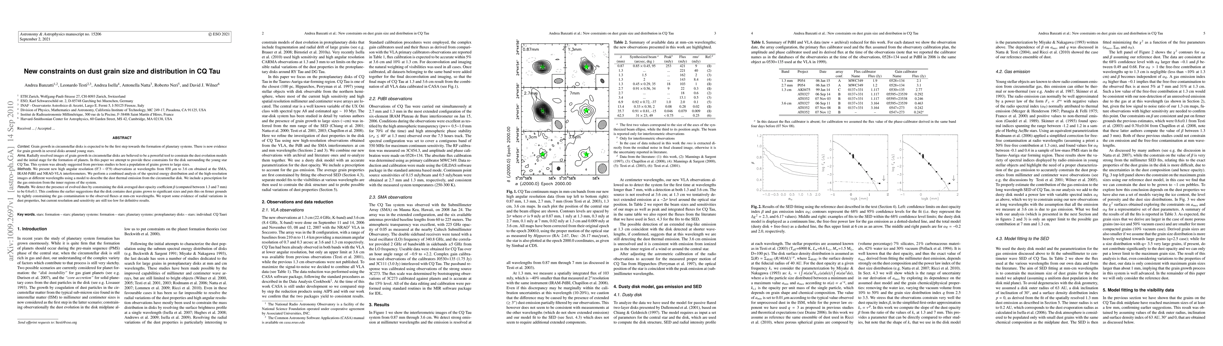 This paper provides new high angular resolution observations of the circumstellar disk around CQ Tau, revealing significant grain growth and constraining the dust grain size and distribution. The study confirms the presence of large dust grains and suggests radial variations in dust properties, although further resolution is needed for definitive conclusions.