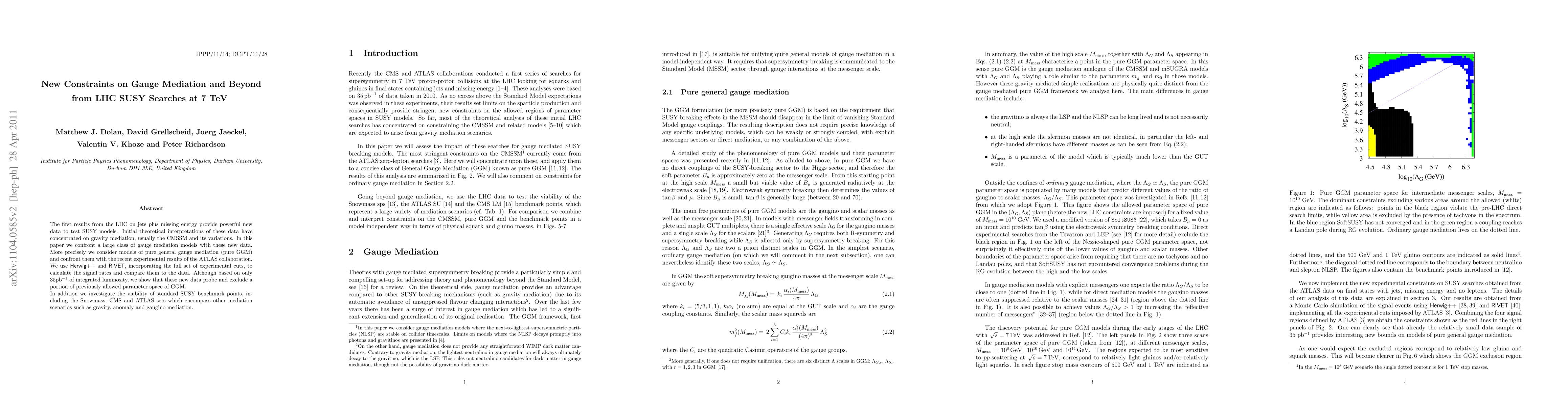 This paper analyzes the impact of initial LHC data at 7 TeV on gauge mediation models, specifically pure general gauge mediation (pure GGM), using ATLAS experimental results. The study finds that these new data exclude parts of previously allowed parameter space for GGM and assesses the viability of standard SUSY benchmark points across various mediation scenarios.
