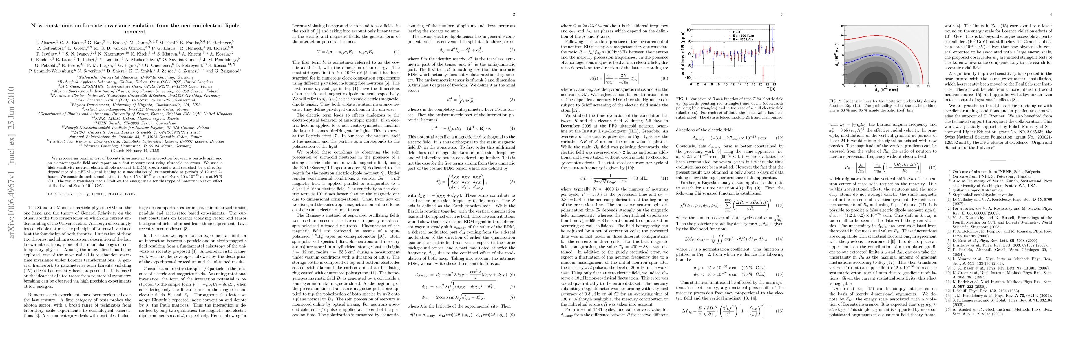 We propose an original test of Lorentz invariance in the interaction between a particle spin and an electromagnetic field and report on a first measurement using ultracold neutrons. We used a high sensitivity neutron electric dipole moment (nEDM) spectrometer and searched for a direction dependence of a nEDM signal leading to a modulation of its magnitude at periods of 12 and 24 hours. We constrain such a modulation to $d_{12} < 15 \times 10^{-25} \ e\,{\rm cm}$ and $d_{24} < 10 \times 10^{-25} \ e\,{\rm cm}$ at 95~\% C.L. The result translates into a limit on the energy scale for this type of Lorentz violation effect at the level of ${\cal E}_{LV} > 10^{10}$~GeV.