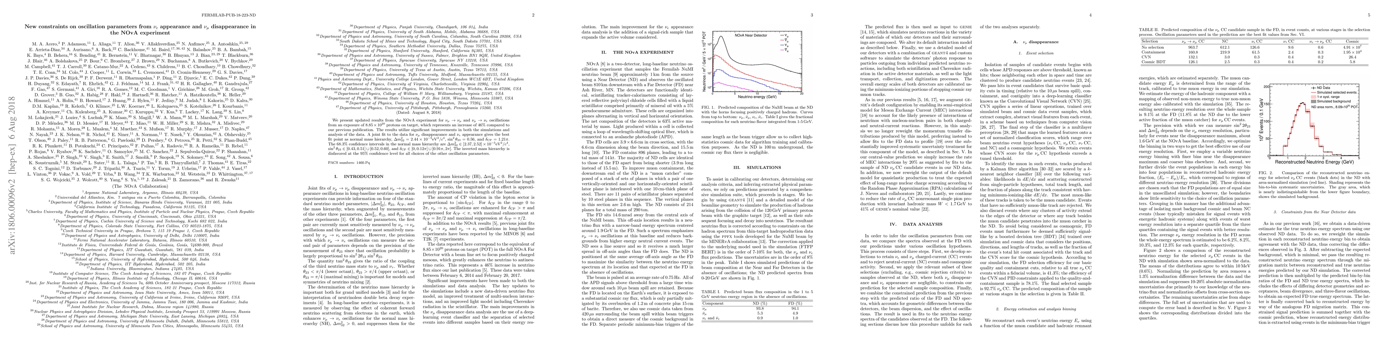The NOvA experiment reports updated oscillation parameters from $\nu_\mu$ disappearance and $\nu_e$ appearance, revealing a best fit for normal mass hierarchy with $\Delta m^2_{32} = 2.44\times 10^{-3}{\rm eV}^2/c^4$, $\sin^2\theta_{23} = 0.56$, and $\delta_{CP} = 1.21\pi$. The inverted mass hierarchy is disfavored at 95% confidence level.