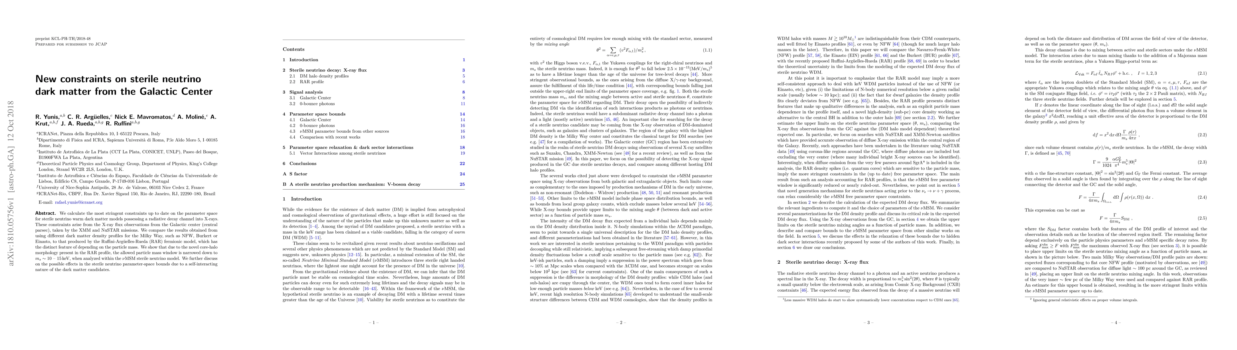 This paper presents the most stringent constraints on sterile neutrino warm dark matter models with radiative decay, derived from X-ray observations of the Galactic Center. The analysis narrows the allowed particle mass window to $m_s\sim 10-15$ keV, particularly when using the Ruffini-Argüelles-Rueda fermionic model.