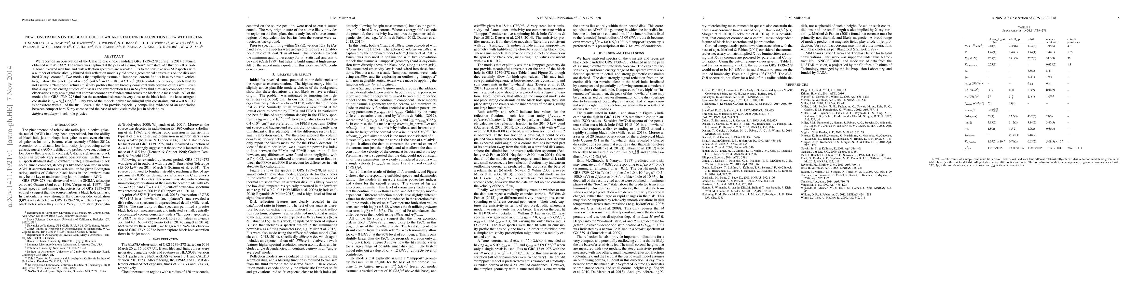 This study, using NuSTAR data from the 2014 outburst of GRS 1739-278, reveals a compact hard X-ray corona and a close-in accretion disk, suggesting a fundamental link between compact coronae and relativistic radio jets across black hole mass scales. The best-fit models indicate a corona height of 5 (+7, -2) GM/c^2 and an accretion disk extending to r = 5 (+3,-4) GM/c^2.