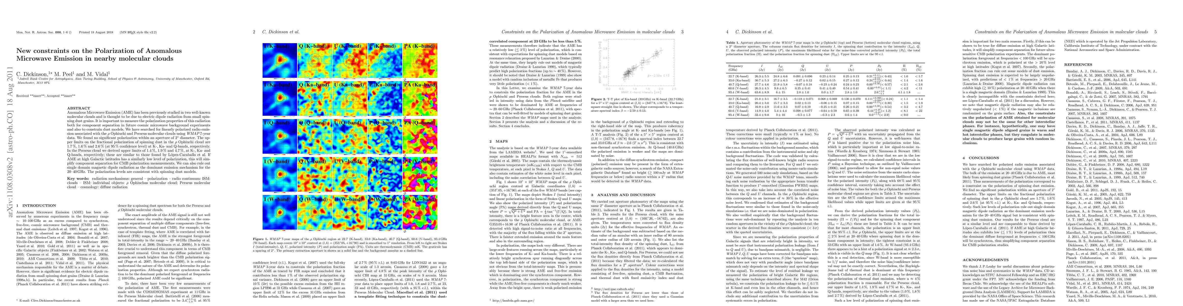 This paper investigates the polarization of Anomalous Microwave Emission (AME) in the $\rho$ Ophiuchi and Perseus molecular clouds using WMAP data, finding no significant polarization within a $2^{\circ}$ aperture. The study sets upper limits on the fractional polarization, supporting spinning dust models and ruling out single domain magnetic dipole radiation as the dominant emission mechanism.