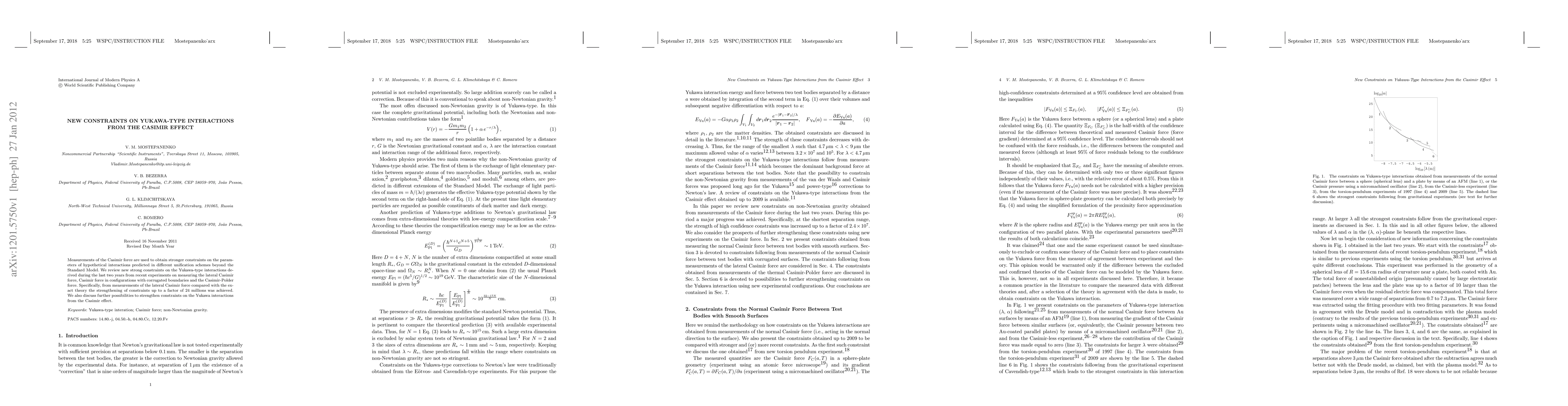 Measurements of the Casimir force are used to obtain stronger constraints on the parameters of hypothetical interactions predicted in different unification schemes beyond the Standard Model. We review new strong constraints on the Yukawa-type interactions derived during the last two years from recent experiments on measuring the lateral Casimir force, Casimir force in configurations with corrugated boundaries and the Casimir-Polder force. Specifically, from measurements of the lateral Casimir force compared with the exact theory the strengthening of constraints up to a factor of 24 millions was achieved. We also discuss further possibilities to strengthen constraints on the Yukawa interactions from the Casimir effect.