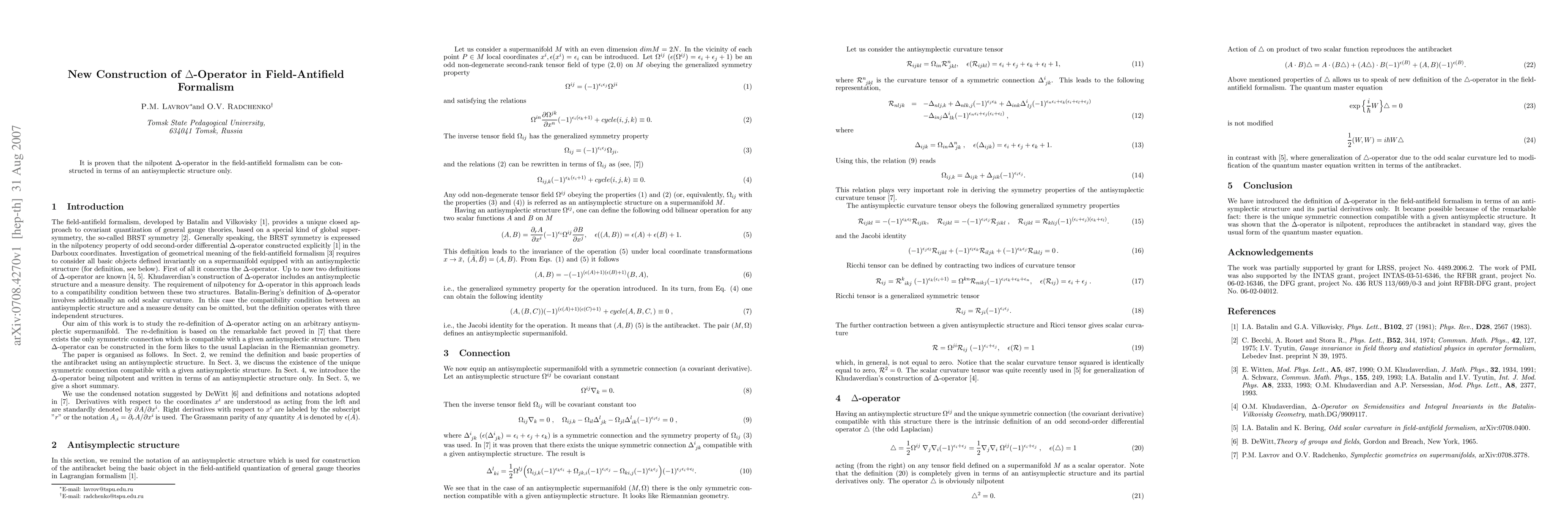 Summary: This paper demonstrates a novel construction of the nilpotent $\Delta$-operator within the field-antifield formalism, showing it can be derived solely from an antisymplectic structure, thus simplifying the formalism.