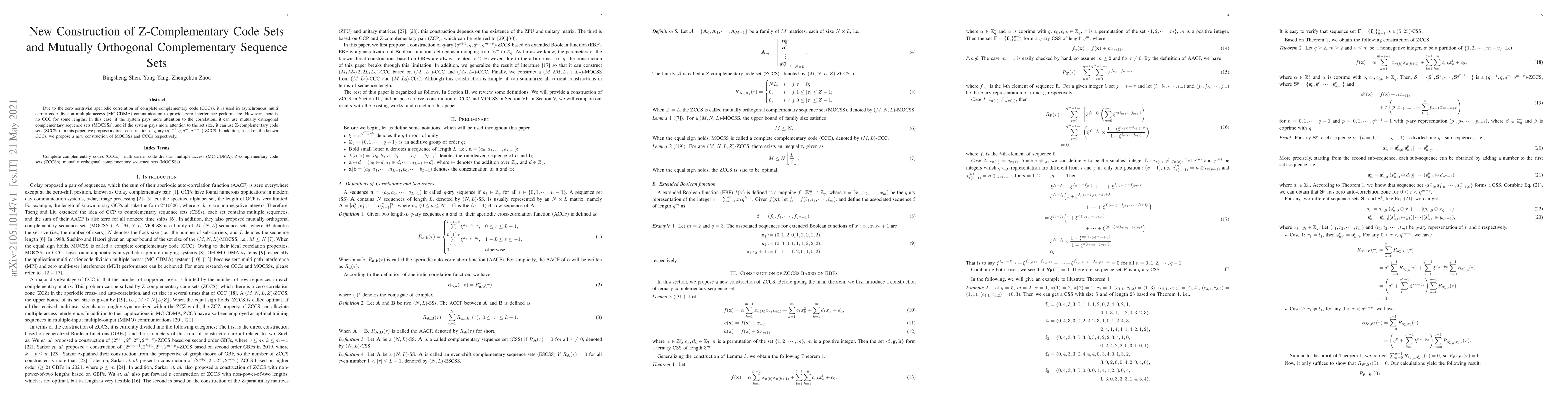 Due to the zero nontrivial aperiodic correlation of complete complementary code (CCCs), it is used in asynchronous multi carrier code division multiple access (MC-CDMA) communication to provide zero interference performance. However, there is no CCC for some lengths. In this case, if the system pays more attention to the correlation, it can use mutually orthogonal complementary sequence sets (MOCSSs), and if the system pays more attention to the set size, it can use Z-complementary code sets (ZCCSs). In this paper, we propose a direct construction of $q$-ary $(q^{v+1},q,q^m,q^{m-v})$-ZCCS. In addition, based on the known CCCs, we propose a new construction of MOCSSs and CCCs respectively.