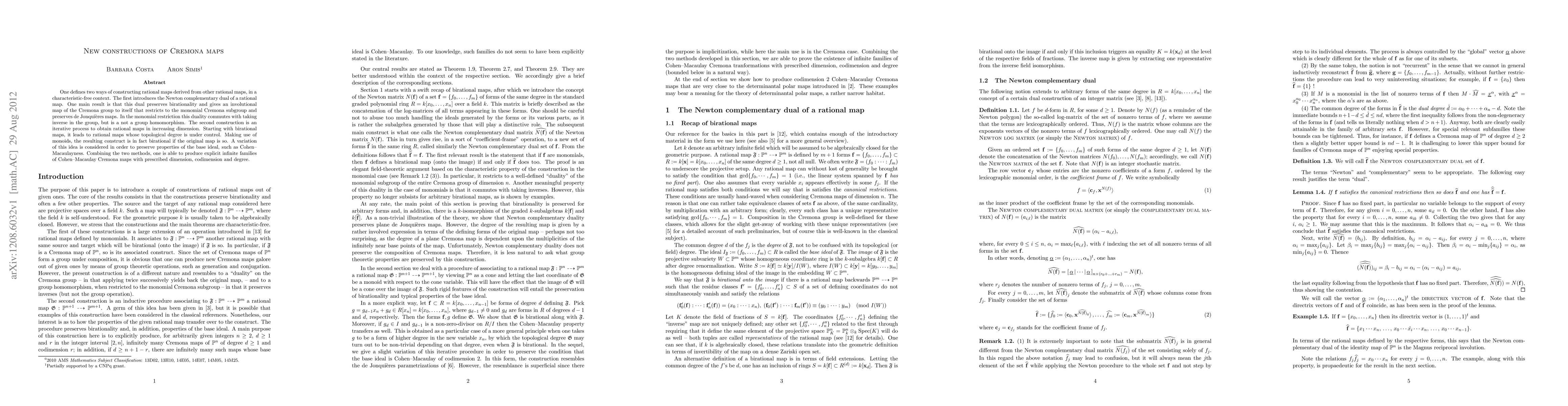 One defines two ways of constructing rational maps derived from other rational maps, in a characteristic-free context. The first introduces the Newton complementary dual of a rational map. One main result is that this dual preserves birationality and gives an involutional map of the Cremona group to itself that restricts to the monomial Cremona subgroup and preserves de Jonqui\`eres maps. In the monomial restriction this duality commutes with taking inverse in the group, but is a not a group homomorphism. The second construction is an iterative process to obtain rational maps in increasing dimension. Starting with birational maps, it leads to rational maps whose topological degree is under control. Making use of monoids, the resulting construct is in fact birational if the original map is so. A variation of this idea is considered in order to preserve properties of the base ideal, such as Cohen--Macaulayness. Combining the two methods, one is able to produce explicit infinite families of Cohen--Macaulay Cremona maps with prescribed dimension, codimension and degree.