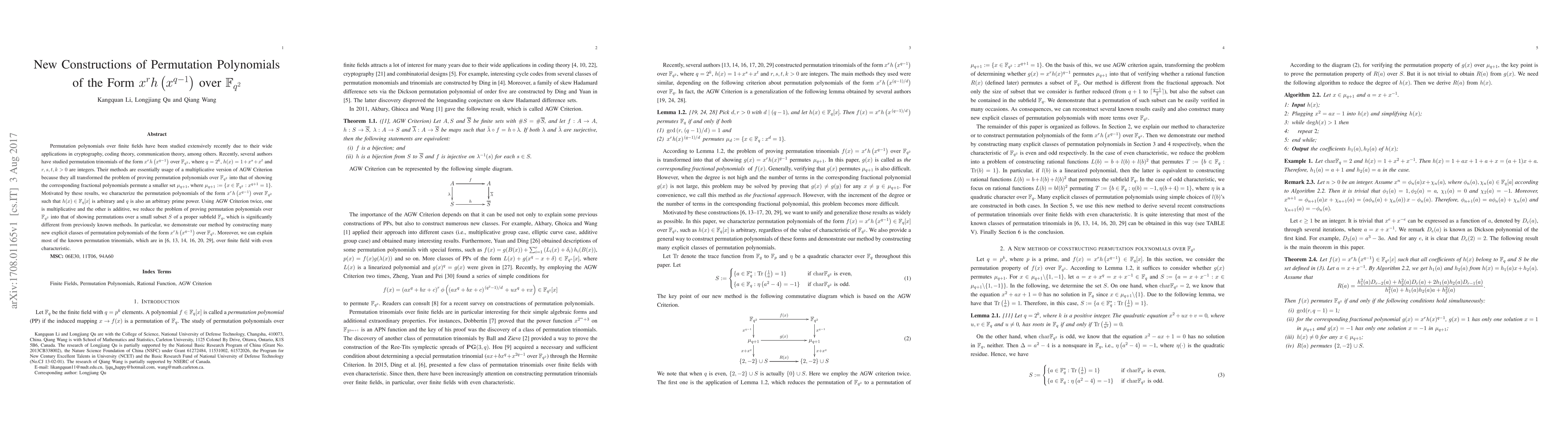 This paper characterizes permutation polynomials of the form $x^rh\left(x^{q-1}\right)$ over $\mathbb{F}_{q^2}$, using a novel application of the AGW Criterion to reduce the problem to permutations over a smaller subset $S$ of $\mathbb{F}_{q}$. It constructs new classes of such polynomials and explains previously known permutation trinomials.