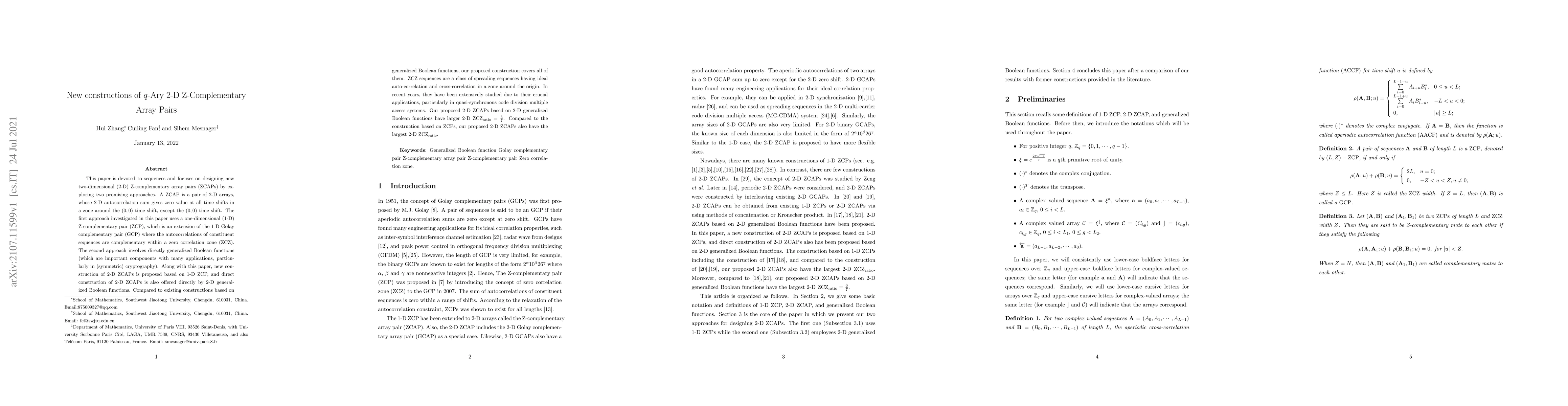This paper introduces new constructions for two-dimensional (2-D) Z-complementary array pairs (ZCAPs) using both 1-D Z-complementary pairs and 2-D generalized Boolean functions, achieving the largest ZCZ ratio compared to existing methods.