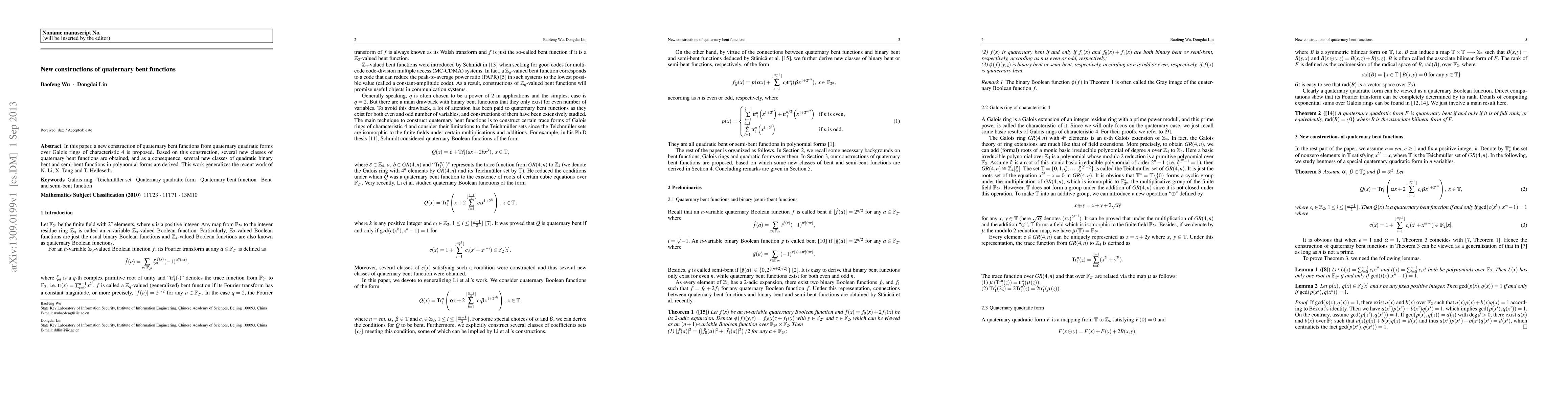 This paper introduces a novel construction of quaternary bent functions from quaternary quadratic forms over Galois rings of characteristic 4, leading to new classes of quaternary bent functions and quadratic binary bent and semi-bent functions. It extends the recent work of Li, Tang, and Helleseth.