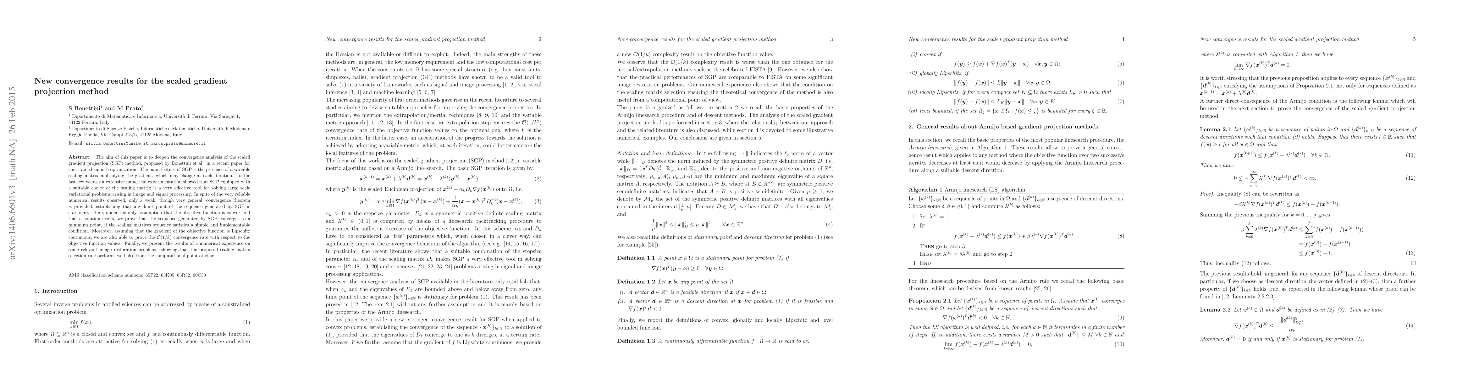 Researchers improve the convergence analysis of the scaled gradient projection method, proving it converges to a minimum point under certain conditions, with potential for faster convergence rates.