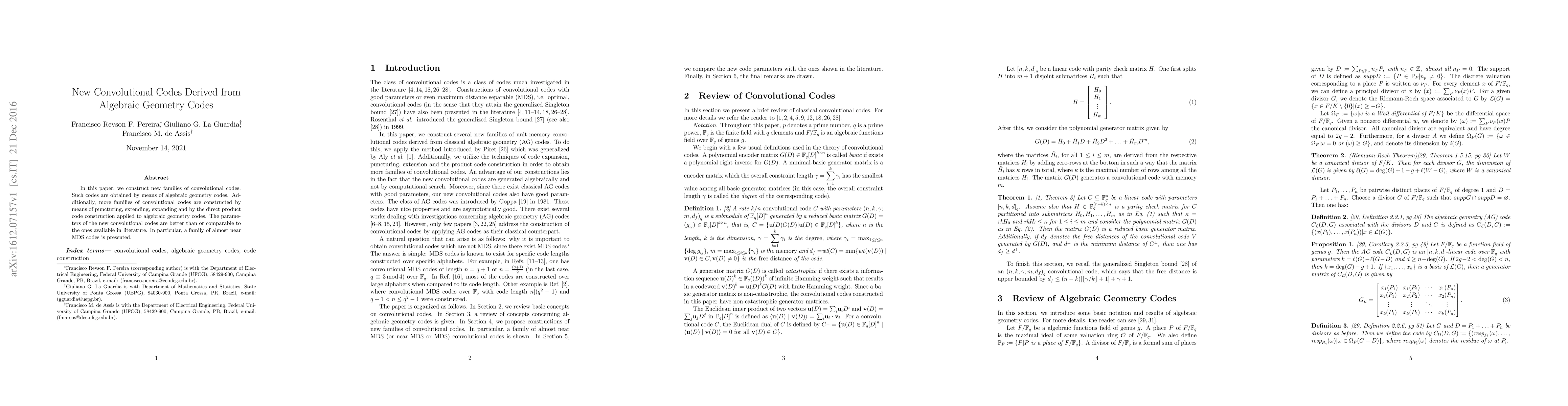 This paper introduces new families of convolutional codes derived from algebraic geometry codes, employing techniques like puncturing, extending, and direct product constructions. The new codes achieve parameters superior to or on par with existing literature, including almost near Maximum Distance Separable (MDS) codes.
