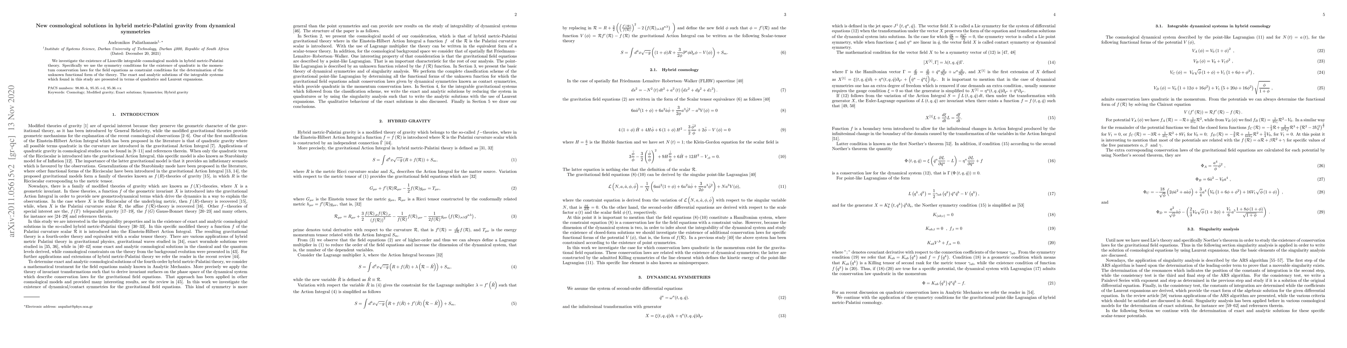 This research presents new cosmological solutions in hybrid metric-Palatini gravity derived from dynamical symmetries, offering a novel approach to understanding integrable models in modified gravitational theories.