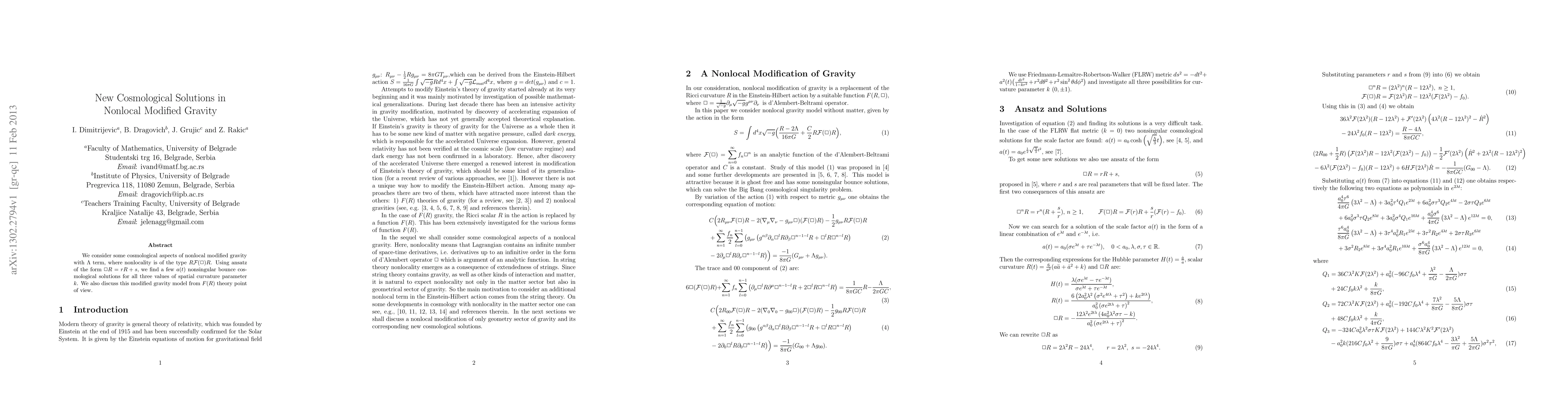 This research paper explores new cosmological solutions in nonlocal modified gravity with a Lambda term, finding nonsingular bounce cosmological solutions for different spatial curvature parameters. It discusses implications from F(R) theory perspective.